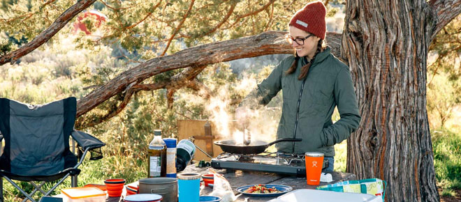 Invest in a quality cookware set for your camping adventures. The GSI Pinnacle Cookset is a lightweight, versatile set that includes a hard-shell stove and pots that can be used for car camping or backpacking. This set is expensive but it offers a good value. The plastic pieces are BPA-free and it is built to last a long time. If you want something more affordable, try the Jetboil Flash stove system. It has an integrated canister and can boil a liter of water in around 3.5 minutes.